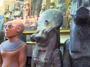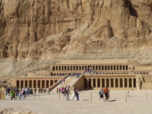 この王家の谷には、ラムセス一家、有名なツタンカーメン、トトメス1世、および、王家一族の墓場がある! また、メムノンの巨像も見られる。これは、ローマ時代の地震による、ひびが入ったために、強いか風がふくと その風によって「像が歌う」と言われて不思議がられたが、しかし後に補修工事が行われた為に、今では静かになった。 この、王家の谷には、いつでも人々が、押し寄せている。 メムノンの巨象、風と共に変な物音にビックリ! クヌス神、ろくろで人間を造ったとされている。創造新、牡羊の頭