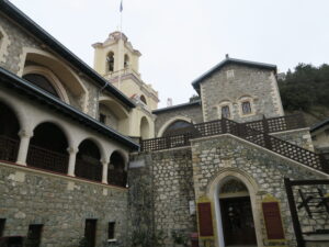 キプロスで最も有名なキッコウ修道院 キプロスの山岳地帯のトロードス地方にある、キプロスで最も有名であるキッコウ修道院である。 現在の建物は19-20世紀に建てられたものである。幾度も火災に見舞われ為である。 ふたりの若者たちが、非業に会い、ふたりとも撲殺・射殺されてなくなった、それを見て、祭壇のマリア像が その、悲しみ為、直後より、涙を流している事で有名になった。また、聖母マリアのイコンが聖ルカにより 描かれた、現存する3点のうちひとつがあり、貴重なものされているが、この日は拝観する事は出来なかった。