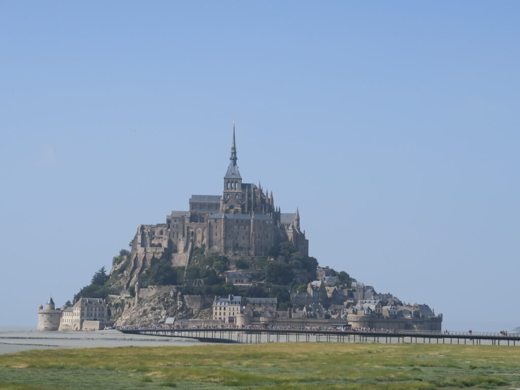潮の満ち引きにより島と陸地を行き来する独特の地形と、ロマネスク〜ゴシック建築が重層的に積み重なった姿は、現在も世界遺産として高く評価されています。